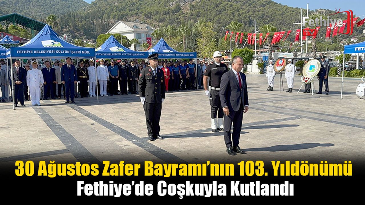 30 Ağustos Zafer Bayramı’nın 103. yıldönümü, tüm yurtta olduğu gibi Fethiye’de de düzenlenen törenlerle kutlandı. Beşkaza Meydanı’ndaki Atatürk Anıtı önünde gerçekleştirilen törenlere vatandaşlar yoğun ilgi gösterdi.