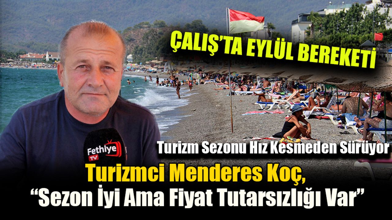 29 yıldır turizm sektöründe faaliyet gösteren işletmeci Menderes Koç, eylül ayının esnaf için kritik önem taşıdığını vurgulayarak, “Geçmiş yıllarda eylül ayı esnafın can damarıydı. Asıl parayı harcamak isteyen turist bu dönemde tatile geliyordu. Bu eylülde Allah’tan geçmiş yılları aratmıyor. Türkiye genelinde temmuz ortasına kadar turizm kan ağladı. Sezon bir ay daha böyle devam ederse en azından esnafa can suyu olur” dedi.