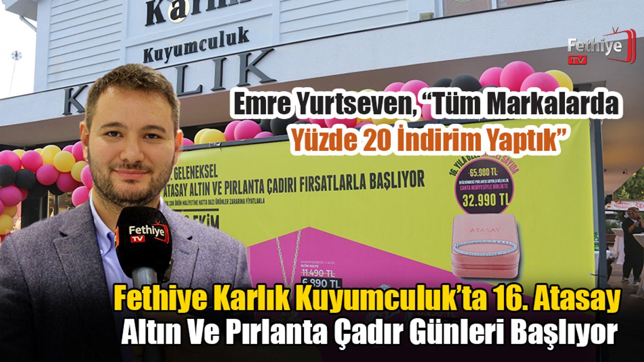 Fethiye Karlık Kuyumculuk’ta geleneksel hale gelen Atasay Altın ve Pırlanta Çadırı bu yıl 16. kez kapılarını açıyor. 16-19 Ekim tarihleri arasında sürecek kampanyada, altın ve pırlantada büyük indirim fırsatları müşterileri bekliyor. Karlık Kuyumculuk, Atasay markasının yanı sıra sektörde öne çıkan birçok markada da indirim uygulayarak, geniş ürün yelpazesiyle müşterilerine hem uygun fiyat hem de kalite avantajı sunmayı hedefliyor.
