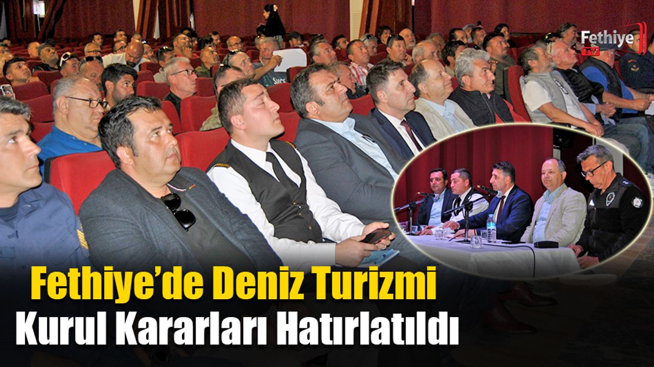 Fethiye Sahil Güvenlik Karakol Komutanlığı ve Liman Başkanlığı öncülüğünde Özer Olgun Kültür Merkezi Salonu’nda deniz sektörü bilgilendirme toplantısı gerçekleştirildi. Toplantıya Sahil Güvenlik Karakol Komutanı Burak Akanpınar, Fethiye Liman Başkanı Çetin Çiftçi, DTO Başkanı İlkay Tugay, Turizm Danışma Bürosu Müdürü Saffet Dündar, TÜRSAB Batı Akdeniz Bölgesel Yürütme Kurulu Başkanı Özgen Uysal ile deniz kooperatifleri başkan ve üyeleri, günübirlik tur tekneleri sahip ve kaptanları, charter acentaları yetkilileri ve diğer ilgililer katıldı.