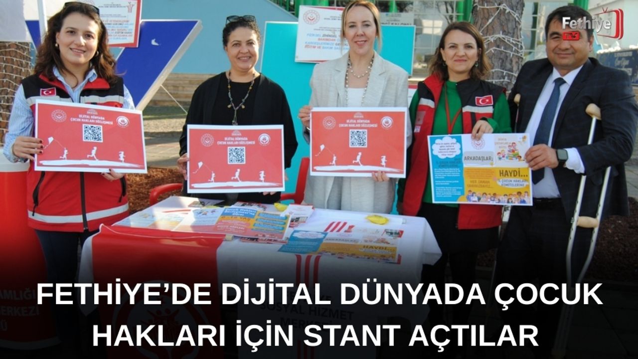 Fethiye Özer Olgun Kültür Merkezi önünde Fethiye Sosyal Hizmet Merkezi Müdürlüğü tarafından kurulan stantta Aile ve Sosyal Hizmetler Bakanlığı'nın başlattığı dijital dünyada Çocuk Hakları Sözleşmesi imza kampanyası broşürleri dağıtılıp vatandaşlara kampanya hakkında bilgilendirmelerde bulunuldu.