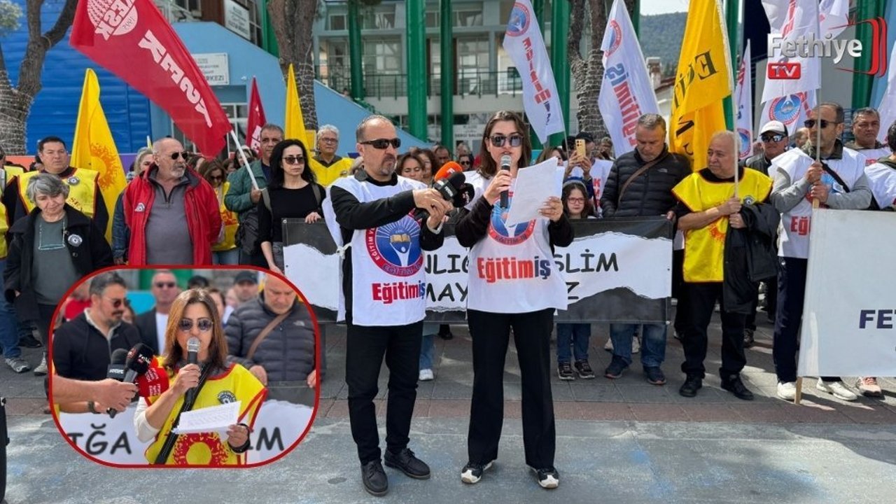 Fethiye Belediyesi Kültür Merkezi önünde bir araya gelen Eğitim Sen ve Eğitim-İş üyeleri, yaşanan saldırıya tepki göstererek iş bırakma eylemi gerçekleştirdi. Eğitim Sen adına konuşan Ayşin Ragıpoğlu ve Eğitim-İş adına açıklama yapan Aslı Girgin, eğitim kurumlarının herkes için güvenli alanlar olması gerektiğini, yaşanan olayın kabul edilemez olduğunu ifade ettiler. Diğer yandan, sendika üyeleri sloganlar atarak protesto etti.