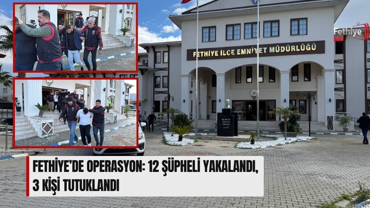 Edinilen bilgilere göre; Çiftlik Mahallesi’nde iki farklı villada kaldığı belirlenen H.İ.Ö.’ye yönelik, Fethiye Cumhuriyet Başsavcılığı talimatıyla operasyon düzenlendi. Operasyonda H.İ.Ö., M.K., İ.A., FFS, FS, ÖÇ, K.D., A.V., E.K., E.O., K.Ş. ve Z.D. isimli toplam 12 şüpheli yakalandı. Aramalarda Uzi ibareli otomatik tabanca ve şarjörü, 179 fişek ile 94 adet sentetik uyuşturucu hap ele geçirildi.