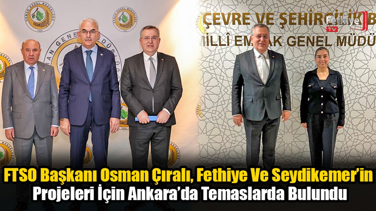 Fethiye ve Seydikemer’in sorunlarının çözümü için temaslarda bulunmak üzere Ankara’da temaslarda bulunan FTSO Başkan Osman Çıralı, AK Parti Muğla Milletvekili Yakup Otgöz ile birlikte gerçekleştirdiği ziyarette, Fethiye Seydikemer Karma Sanayi Sitesi için arazi tahsisi ve alternatif Ölüdeniz yolunun 2026 turizm sezonuna yetiştirilebilmesi için Orman Genel Müdürü Bekir Karacabey’den destek talebinde bulundu.