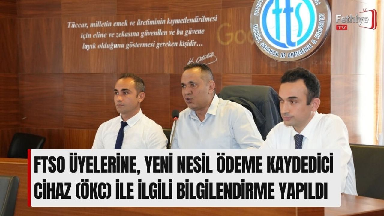 FTSO Likya Salonu’nda FTSO Yönetim Kurulu Başkanı Osman Çıralı ve yönetim kurulu üyelerinin ev sahipliğinde düzenlenen toplantıda Fethiye Vergi Dairesi Müdürü Mithat Aktar ve vergi dairesi temsilcileri, hizmet ve satış sektöründe faaliyet gösteren tüm işletmelerin bağlantılı şekilde çalışmasının zorunlu olduğu, yeni nesil Ödeme Kaydedici Cihaz (ÖKC) ve yazarkasa POS entegrasyonuna ilişkin bilgilendirme yaptı.