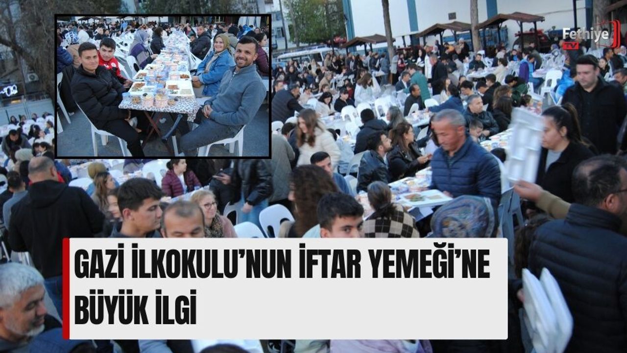 Fethiye Gazi İlkokulu’nun Ramazan ayı nedeniyle düzenlediği iftar programı yoğun ilgi gördü. Yaklaşık 2 bin kişilik hazırlanan iftar yemeğine okul yöneticileri ile öğretmen ve veliler katıldı. Okul bahçesindeki iftar programında öğrencilerin paylaşma bilinci yardımlaşma ve dayanışma duygularının güçlendirilmesi ve birlik beraberlik ruhunun pekiştirilmesinin amaçlandığı kaydedilirken din dersi öğretmeni tarafından iftar yemeğinin ardından duada da bulunuldu. İftar yemeğine İlçe Milli Eğitim Müdürü Faruk Kaya, Okul Müdürü Ufuk Yüce, şube müdürleri ve diğer davetliler katıldı.