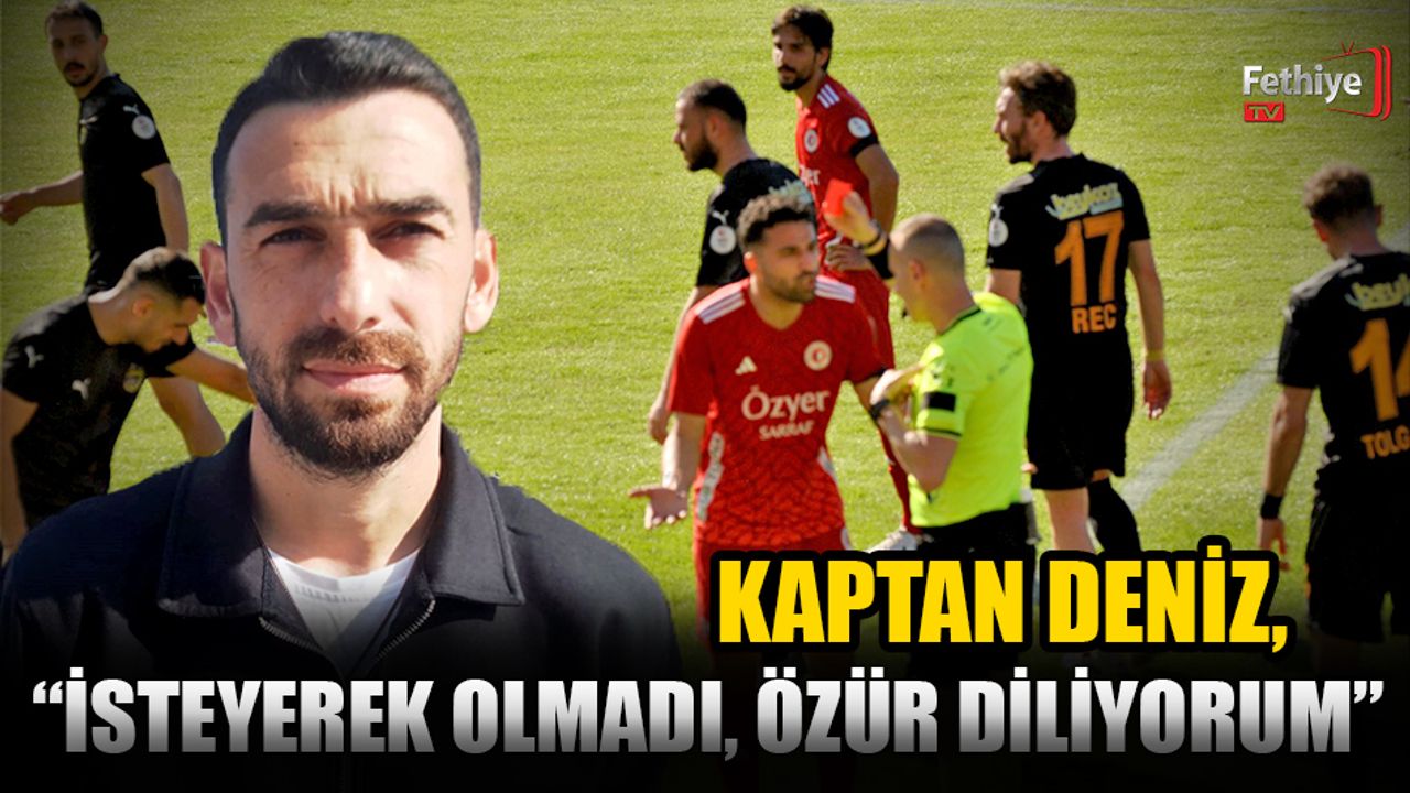 Fethiyespor’un kendi evinde Beykozspor karşısında 1-0 öne geçtikten sonra ilk yarının bitmesine 3 dakika kala arka arkaya gördüğü 2 sarı karttan kırmızı kartla oyun dışı kalan kaptan Serdar Ümit Deniz “Çok üzüldüm. Hala üzgünüm. Asla isteyerek olmadı. İstem dışı oldu. Özür diliyorum” ifadelerini kullandı.
