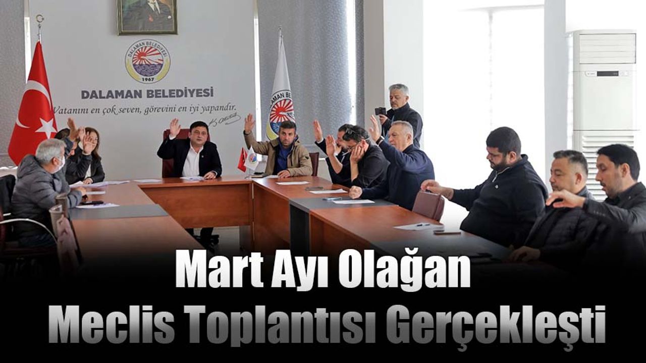 Dalaman Belediyesi Toplantı salonunda düzenlenen Mart Ayı Olağan Meclis Toplantısında 1 tanesi gündem dışı olmak üzere 15 gündem maddesi görüşülüp oy birliği ile geçti.