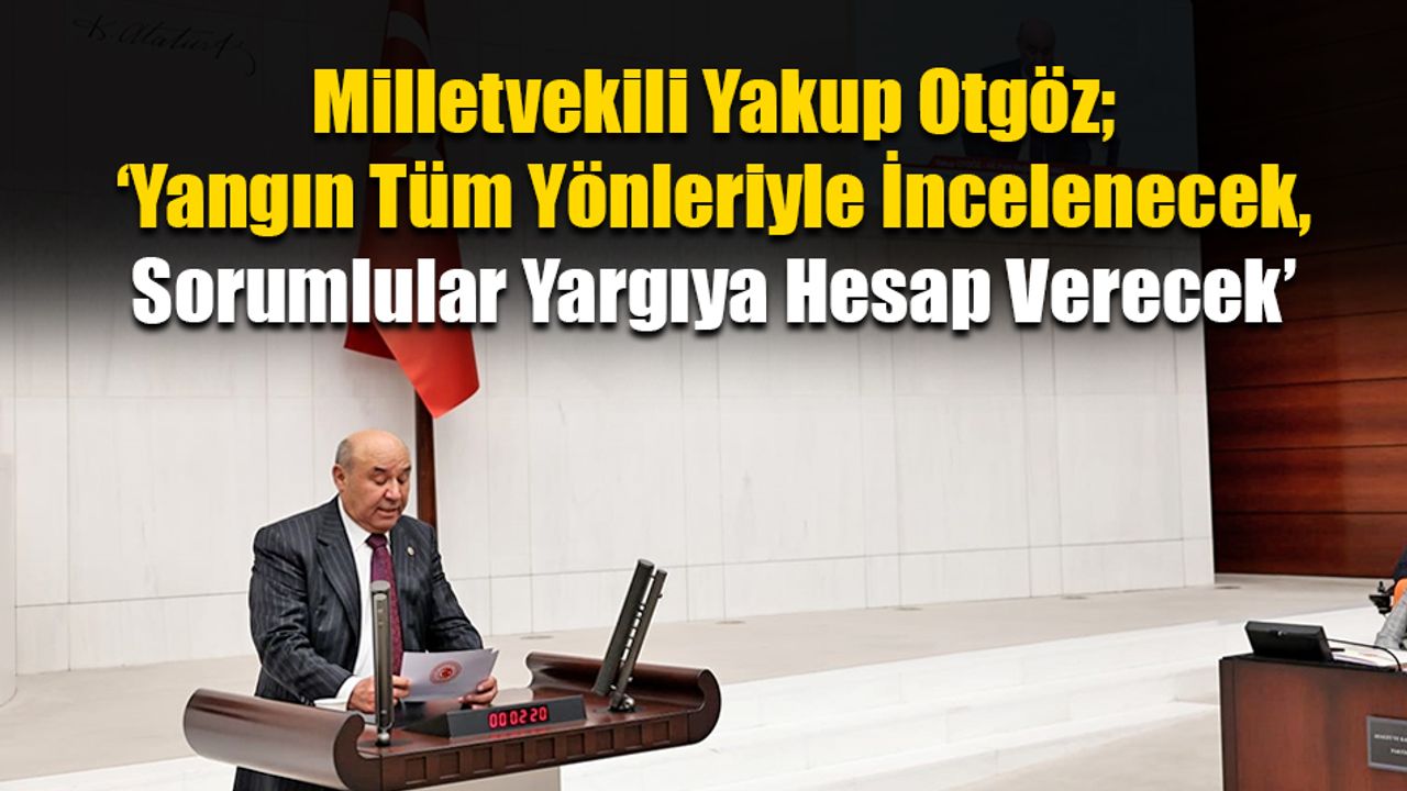 TBMM Genel Kurulu’nda konuşan AK Parti Muğla Milletvekili Yakup Otgöz, Kartalkaya’da yaşanan yangında hayatını kaybeden vatandaşlara başsağlığı dileyerek, olayın sorumlularının mutlaka ortaya çıkarılacağını ve hak ettikleri cezaları alacağını söyledi.