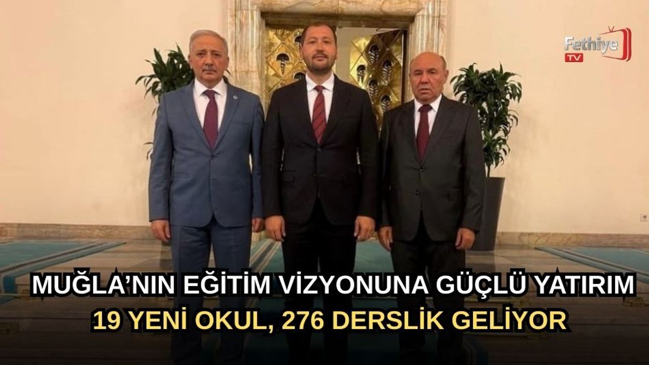 Cumhurbaşkanımız Sayın Recep Tayyip Erdoğan’ın güçlü iradesi ve himayelerinde, Millî Eğitim Bakanlığımızın koordinasyonunda, Muğla Valiliğimiz ve İl Millî Eğitim Müdürlüğümüzün titiz çalışmaları neticesinde; ilimiz genelinde 276 derslikten oluşan 19 yeni okul projesi hayata geçirilecektir.