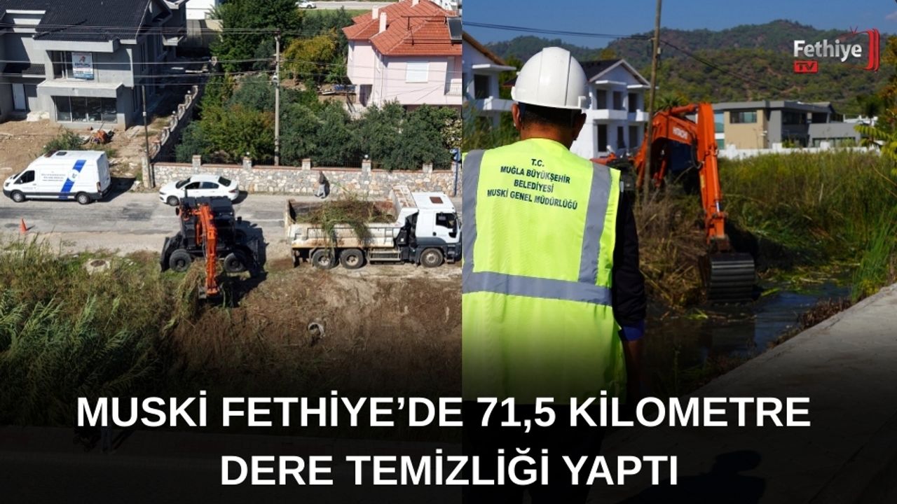MUSKİ Genel Müdürlüğünden yapılan açıklamada, "Büyükşehir Belediye Başkanımız Ahmet Aras’ın ‘Temiz bir Muğla’ vizyonu doğrultusunda, 2025 yılında diğer ilçelerimizde olduğu gibi Fethiye’de de kapsamlı bir dere temizlik çalışması gerçekleştirdik. Şehrimizin doğasını korumak ve su akışını sağlıklı hale getirmek amacıyla yürüttüğümüz çalışmalar kapsamında; Ölüdeniz’den Çiftlik’e, Foça’dan Karagedik’e Fethiye İlçemizin çeşitli mahallelerindeki derelerde biriken rüsubat ve atıkları titizlikle temizledik. İlçe genelinde yürüttüğümüz bu yoğun çalışma sonunda tam 71 bin 500 metrelik dere hattını temizleyerek hem çevre kirliliğinin önüne geçtik hem de muhtemel taşkın risklerine karşı önlemimizi aldık. Modern bir altyapı ve sağlıklı bir çevre hedefiyle, Muğla’mızın her köşesine hizmet götürmeye yeni yılda da tüm gücümüzle ve hız kesmeden devam ediyoruz" denildi.