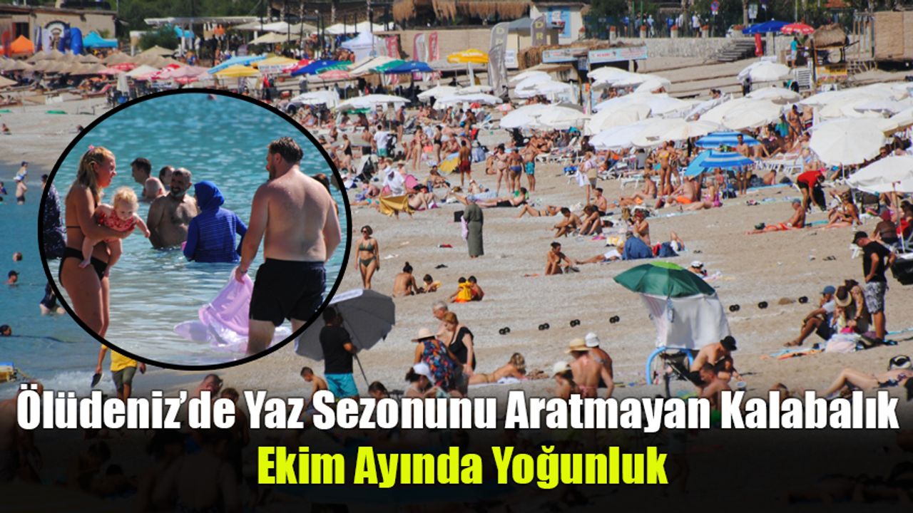 Türkiye'nin büyük bir bölümünde yağışlı ve serin hava etkili olurken, Fethiye Ölüdeniz’de turistler Ekim ayında tatilin tadını çıkarıyor. Daha çok İngiliz, Rus ve Ukraynalı turistlerin yer aldığı Ölüdeniz plajlarında “sarı yaz” yoğunluğu yaşanıyor.