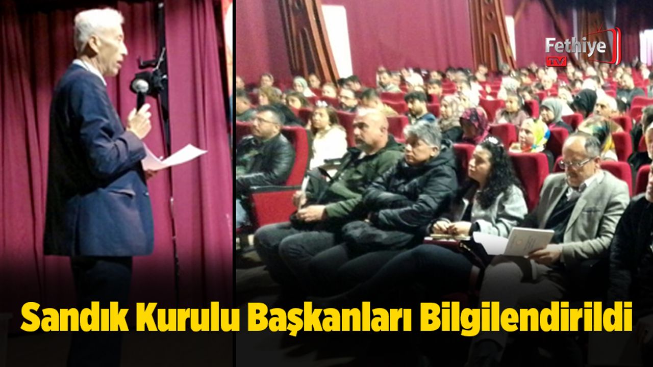 Fethiye’de 130 bin 480 seçmenin 396 sandıkta oy kullanacağı bildirilirken, Fethiye’de ve 41 mahallede yapılacak seçimlerde görev yapacak sandık kurul başkan ve üyeleri de Cuma günü Fethiye Ağır Ceza Mahkemesi ve Fethiye İlçe Seçim Kurulu Başkanı Abdülkadir Ungan ve İlçe Seçim Kurulu Başkanı Murat Başkaya tarafından Fethiye Özer Olgun Kültür Merkezinde sabah ve öğleden sonra iki ayrı oturumda bilgilendirilecekleri öğrenildi.
