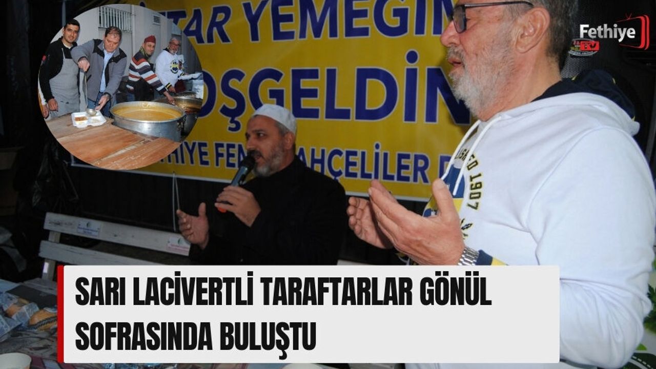 Dernek binası yan tarafında gerçekleştirilen iftar yemeğine yoğun ilgi olurken, dernek başkanı Cihan Ünal ve yönetim kurulu üyeleri kazanlarda pişirilen yemekleri kendi elleriyle ikram ettiler. İftar yemeğinin düzenlendiği sokağa sarı lacivertli dev Fenerbahçe bayrakları asılırken, bir din görevlisi tarafından Kur’an-ı Kerim okunup, Fenerbahçe’nin şampiyonluğu için dualarda bulunuldu. İftar yemeğine Fethiye Belediye Başkanı Alim Karaca, Fethiye Ticaret ve Sanayi Odası Meclis Başkanı Kemal Hıra, CHP Fethiye İlçe Başkanı Mustafa Koyuncu, Fethiye Fenerbahçeliler Derneği Başkanı Cihan Ünal, Fethiyespor Taraftarlar Derneği Başkanı Özkan Hırçın ve çok sayıda Fenerbahçeli taraftarlar ile vatandaşlar katıldı.