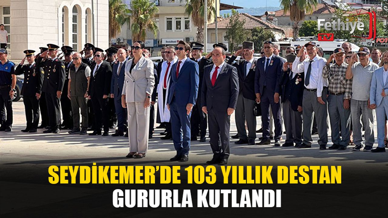 Seydikemer Hükümet Konağı ve Seydikemer Belediyesi önündeki Atatürk heykeline çelenk sunumu, saygı duruşu ve İstiklal Marşı'nın okunmasıyla başlayan tören, Atatürk Anıtına çelenk takdimi ile devam etti. Törende Cumhurbaşkanı Recep Tayyip Erdoğan’ın 30 Ağustos Zafer Bayramı dolayısıyla yayımladığı mesaj okundu. Günün anlam ve önemini belirten konuşmayı Astsubay Ü. Çavuş Kadir Öksüz yaptı.