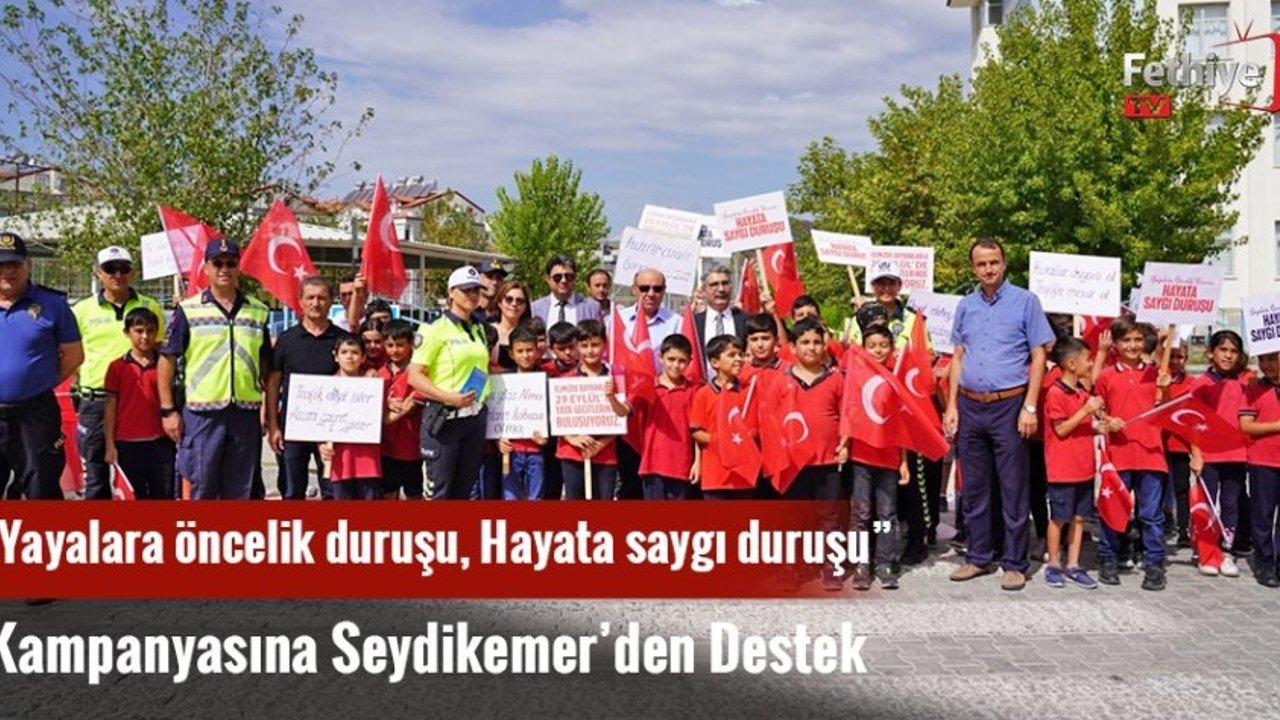 İçişleri Bakanlığınca trafikte yaya önceliğine dikkat çekmek ve sürücü duyarlılığını artırmak amacıyla ülke genelinde eş zamanlı olarak başlatılan “Yayalara Öncelik Duruşu, HAYATA SAYGI DURUŞU” kampanyası Seydikemer’de de gerçekleştirildi.Şehit Gürcan Akan İlkokulu önünde düzenlenen etkinliğe Muğla Vali Yardımcısı ve Seydikemer Kaymakam Vekili Ayhan Yazgan, Seydikemer Belediye Başkanı Yakup Otgöz, Seydikemer İlçe Emniyet Müdürü Muzaffer Yüceur, Seydikemer İlçe Jandarma Komutanı Sadık Çetin, polis ekipleri, öğretmenler ve öğrenciler katıldı.