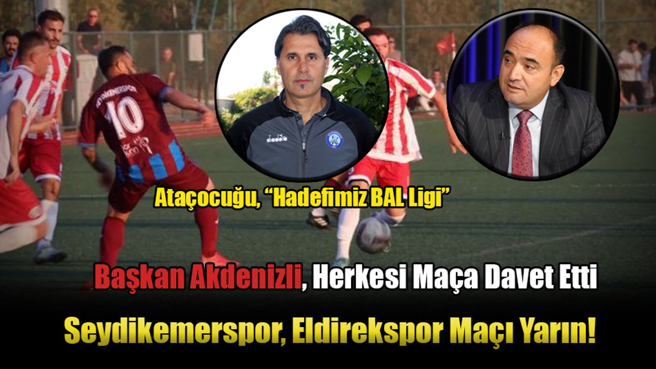 Süper Amatör Lig Play-Off 1. hafta mücadelesinde Fethiye Eldirekgücüspor, Seydikemerspor’u ağırlıyor. Karşılaşma, 9 Şubat Pazar günü saat 14.00’te Fethiye İlçe Stadyumu’nda oynanacak. Seydikemer Belediye Başkanı ve aynı zamanda Seydikemerspor Kulübü Başkanı Önder Akdenizli, tüm futbolseverleri bu önemli mücadeleyi izlemeye davet etti.