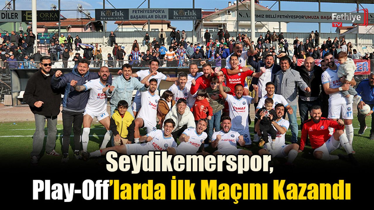 Seydikemerspor, deplasmanda Eldirekgücüspor'u 1- mağlup ederek, Play-Off'lara galibiyetle başladı. Seydikemer Belediye Başkanı ve Seydikemerspor Kulüp Başkanı B. Önder Akdenizli ile Teknik Direktör Enver Ataçocuğu, maç sonunda değerlendirmelerde bulunurken, Seydikemersporlu futbolcular ve taraftarlar galibiyet sevinci yaşadı.