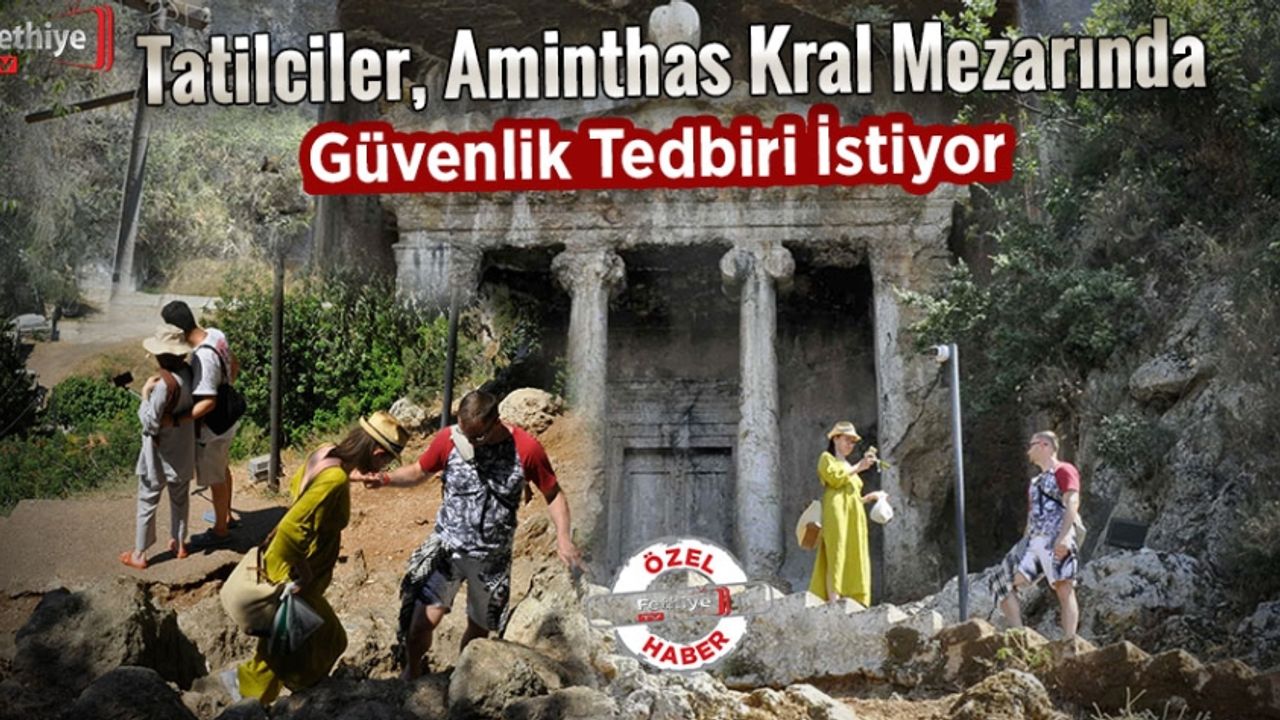 Tatil için Fethiye'ye gelenler, ilçenin tarihi ve kültürel mirasını geziyor. Fethiye'nin merkezinden görkemiyle dikkat çeken Amintas Kaya Mezarı ziyaretçilerini kendine çekiyor. Yaklaşık 100 basamaktan oluşan merdivenleri tamamlayan ziyaretçiler Aminthas Kral Mezarlarına ulaşıp, Fethiye Körfezi ve Şövalye Adası'nı izliyor. Kral mezarına çıkan vatandaşlar hayranlıklarını gizleyemezken, bol bol fotoğraf çektiriyor.