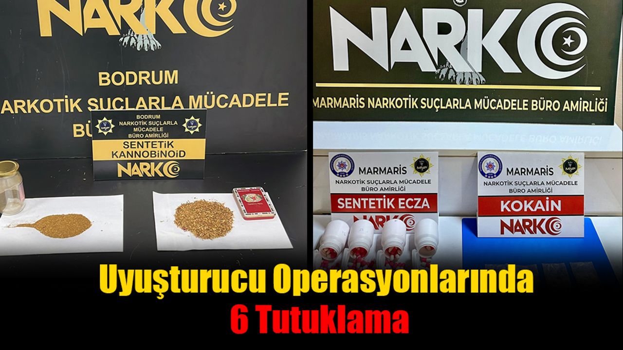 Muğla Emniyet Müdürlüğü Narkotik Suçlarla Mücadele çalışmaları kapsamında uyuşturucu tacirlerine yönelik 9 operasyonda, 47 gram sentetik kannabinoid (Bonzai) maddesi, 8,3 gram metamfetamin 4,3 gram kokain, 2,2 gram esrar, 174 adet sentetik ecza, 10 adet A4 kâğıda emdirilmiş Bonzai, 3 bin 250 TL suçtan elde edildiği değerlendirilen para ele geçirildi.