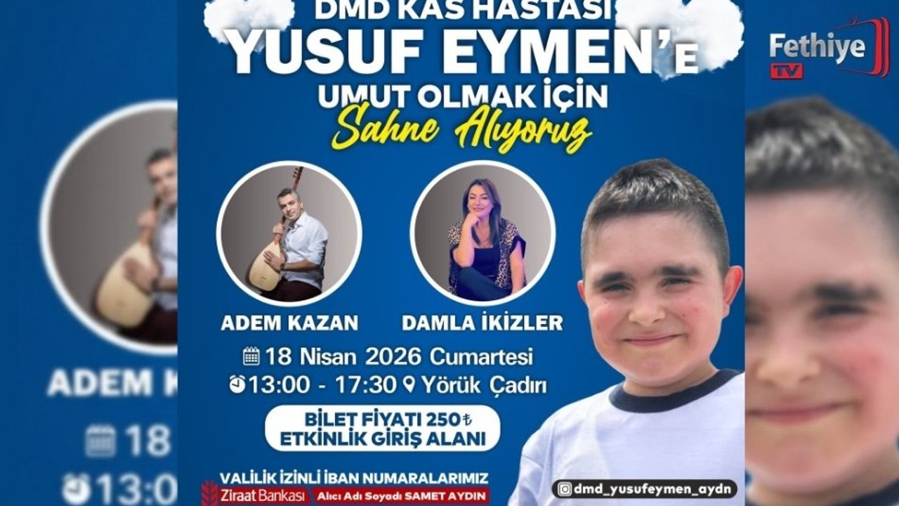 Duchenne Musküler Distrofi (DMD) ile mücadele eden Yusuf Eymen’e destek olmak amacıyla anlamlı bir konser etkinliği düzenleniyor. 18 Nisan 2026 Cumartesi günü saat 13.00 ile 17.30 arasında Yörük Çadırı’nda yapılacak etkinlikte, sanatçılar Adem Kazan ve Damla İkizler sahne alacak.